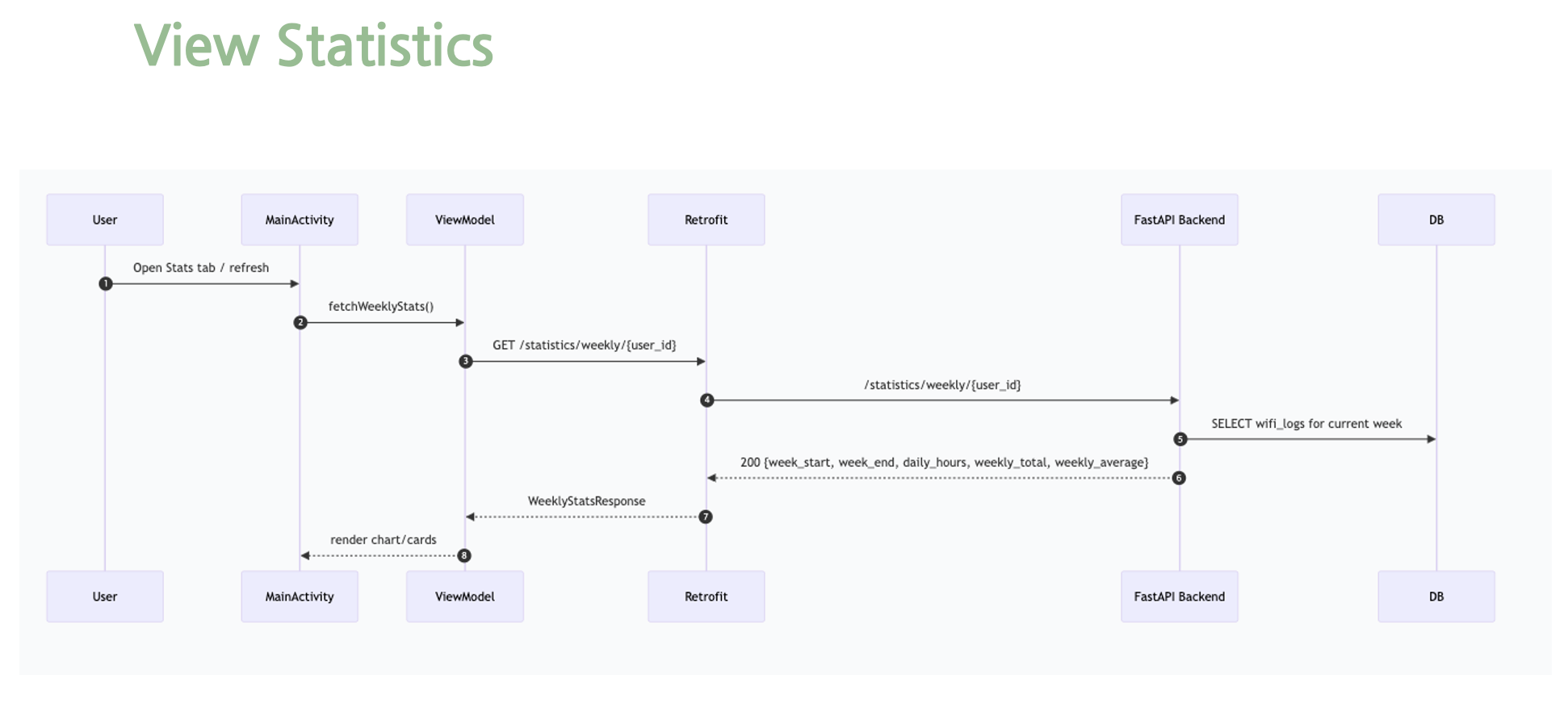 다음은 통계확인 시퀀스다이어그램이다