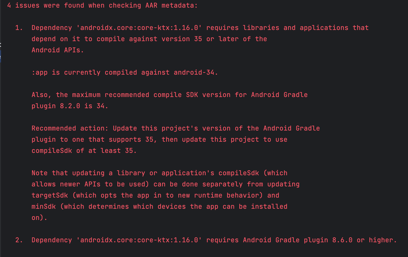 해당 버전에서 사용중이던 gradle 8.2.0 을 gradle버전을 8.6.0으로 올려 다시 빌드했지만 해당 gradle은 내가 사용중이던 andriod studio Hedehog버전을 지원하지 않는 문제가 발생했다